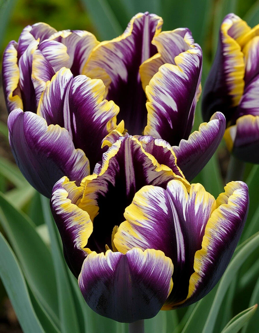 Попугаевые (Parrot): цветут поздней весной, имеют цветки с изрезанными, волнистыми лепестками, напоминающими перья попугая.